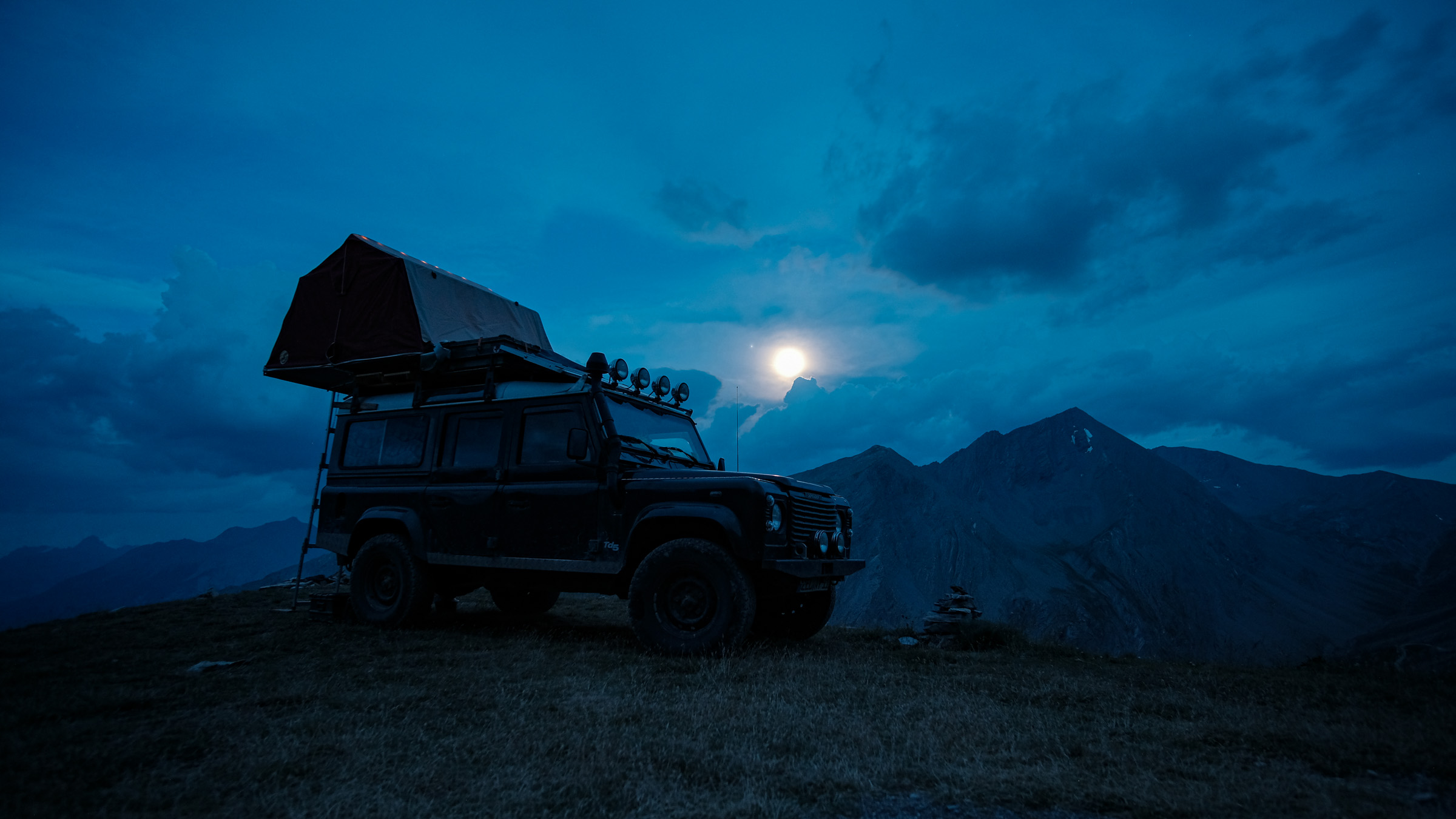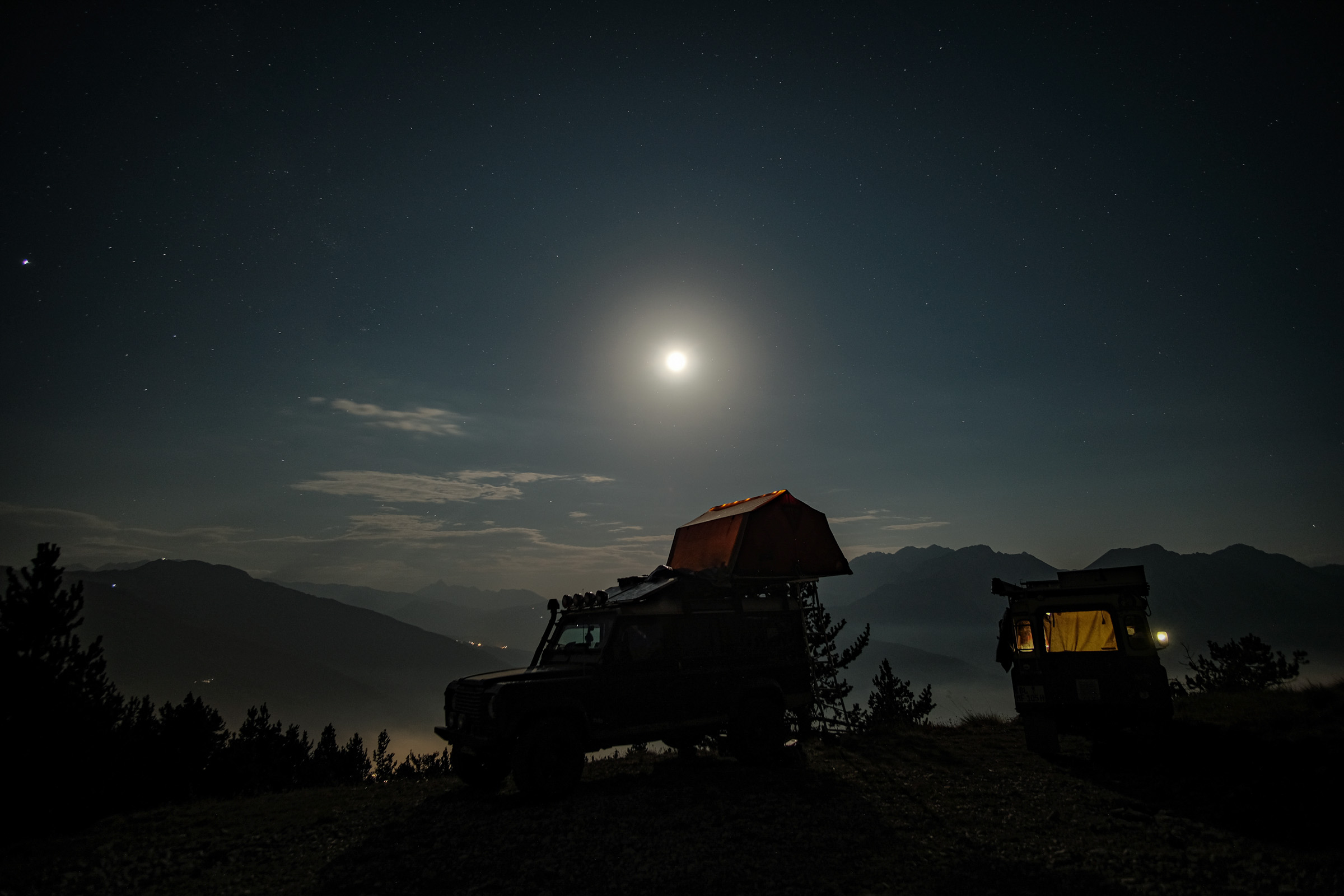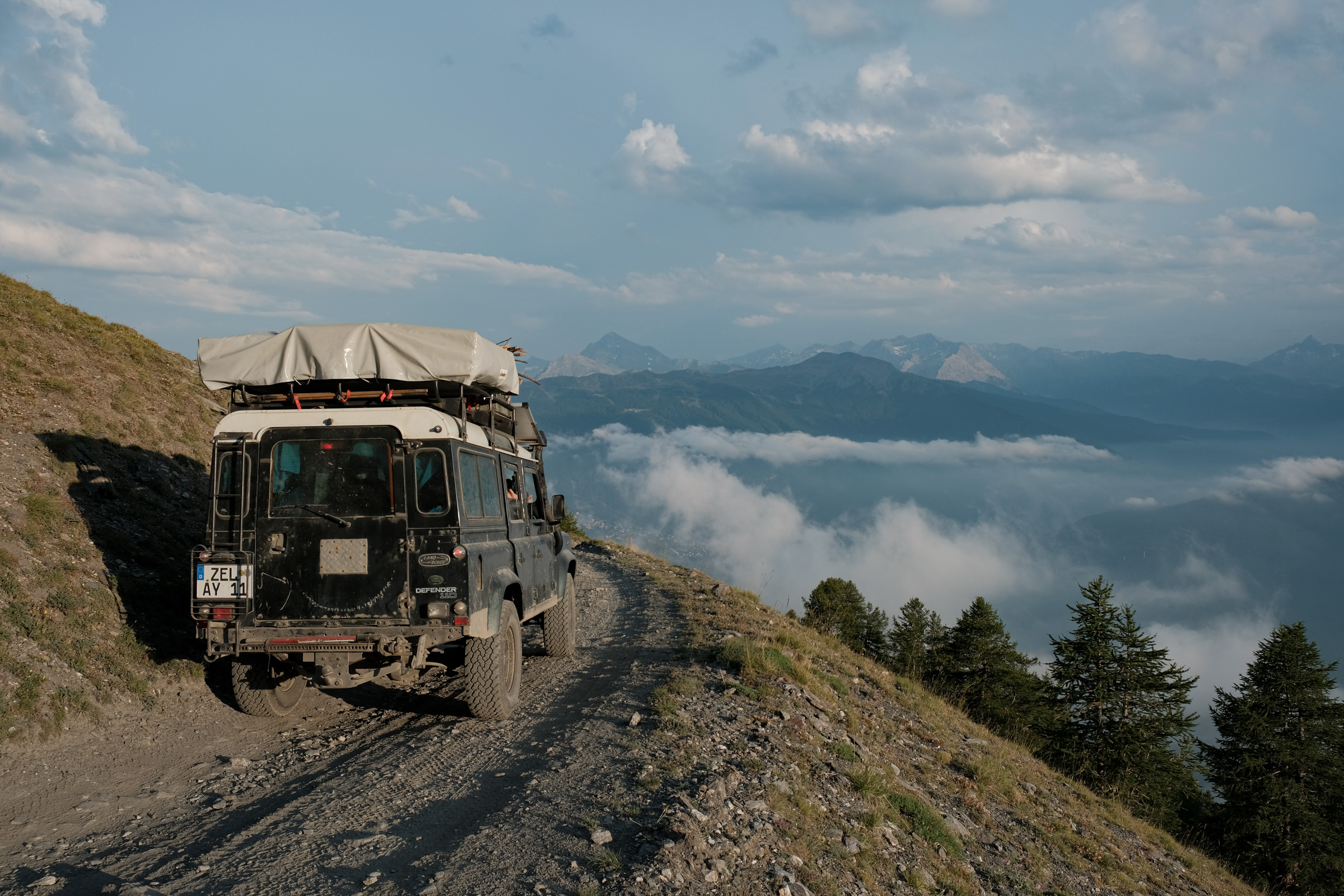 Schnell war auch ein Ziel gefunden, was diesen Ansprüchen gerecht werden kann: Die Westalpen. Entlang der italienisch-französischen Gebirgsgrenze schlängeln sich alte Schmuggler- und Militärstraßen, die Offroader aller Couleur begeistern – vom Radfahrer über Camel-Trophy-Enthusiasten bis hin zum Luxus-Camper. Auch unsere Familie mit Landrover „Gertrud“ machte sich auf die Suche nach dem einsamen Alpenglühen.