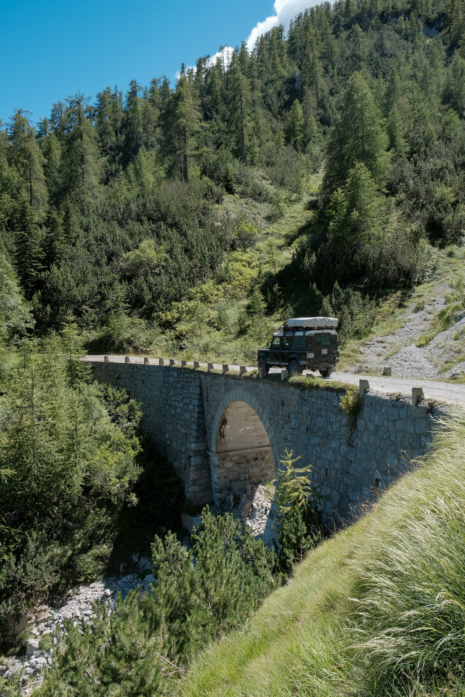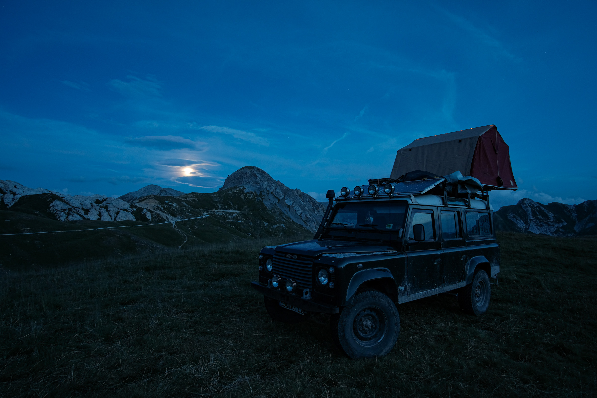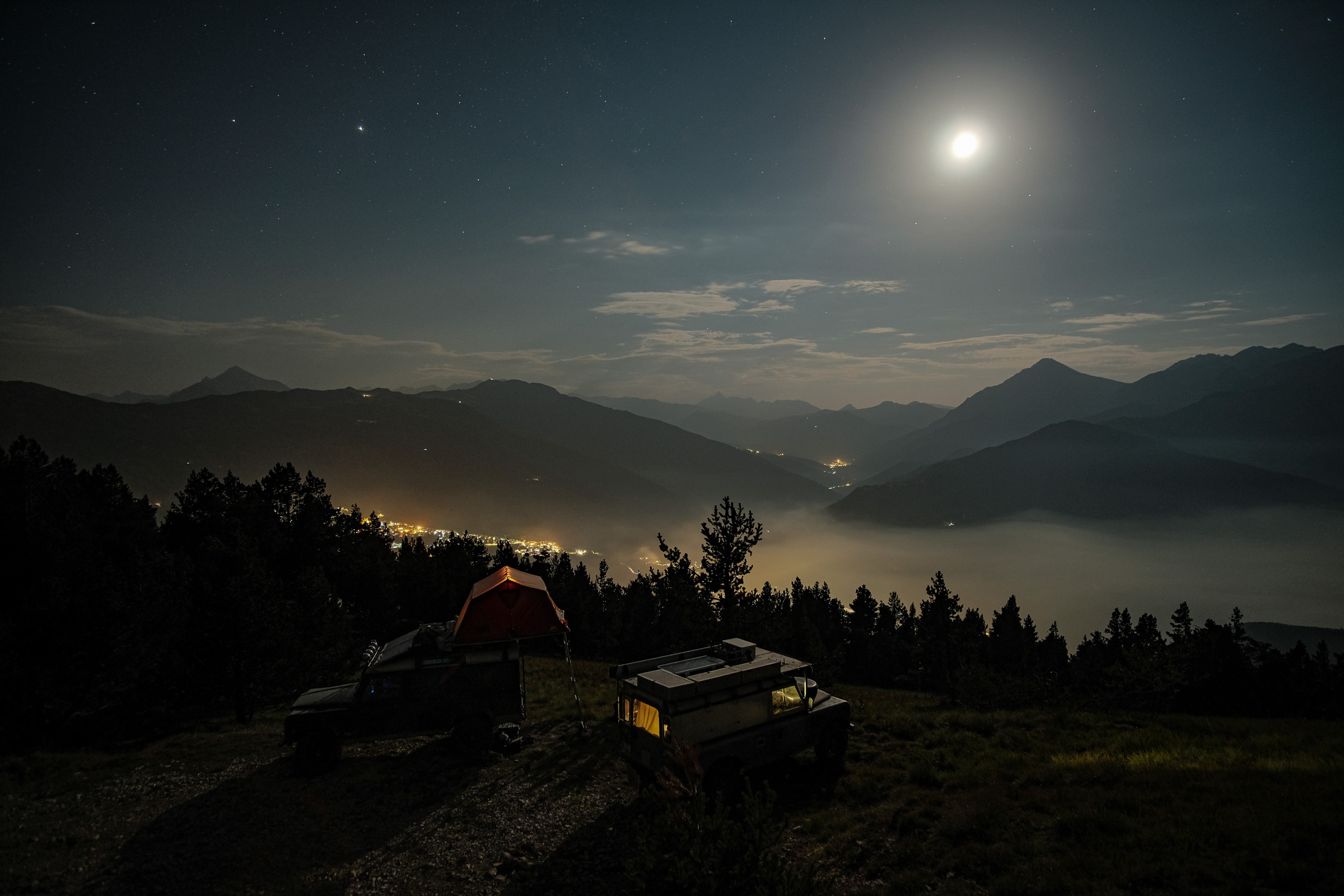 Schnell war auch ein Ziel gefunden, was diesen Ansprüchen gerecht werden kann: Die Westalpen. Entlang der italienisch-französischen Gebirgsgrenze schlängeln sich alte Schmuggler- und Militärstraßen, die Offroader aller Couleur begeistern – vom Radfahrer über Camel-Trophy-Enthusiasten bis hin zum Luxus-Camper. Auch unsere Familie mit Landrover „Gertrud“ machte sich auf die Suche nach dem einsamen Alpenglühen.